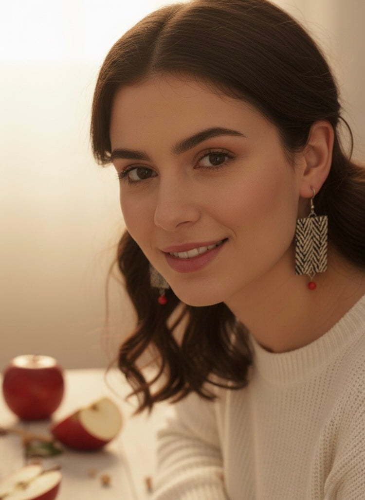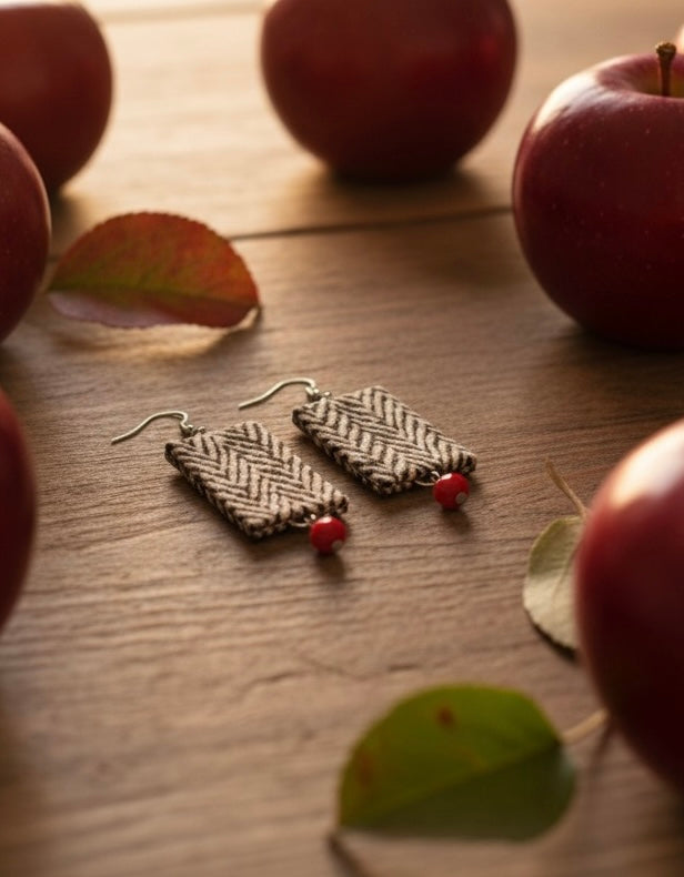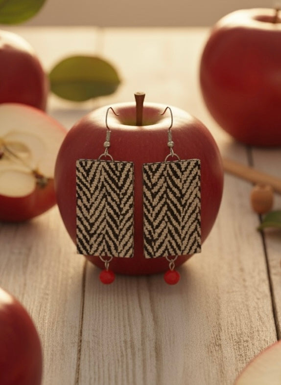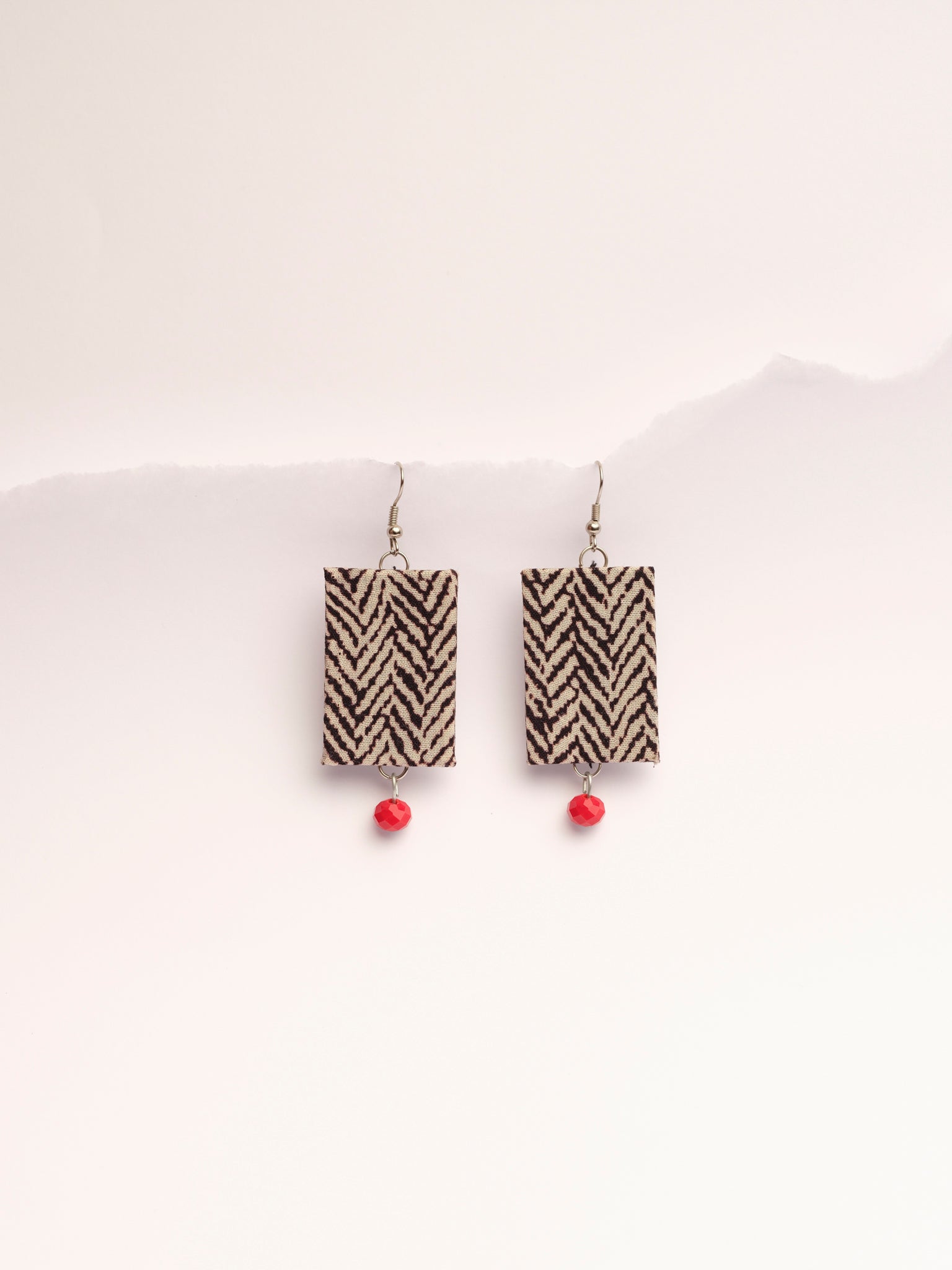 stylize ur outfit with black and white reactangle with red hanging bead.