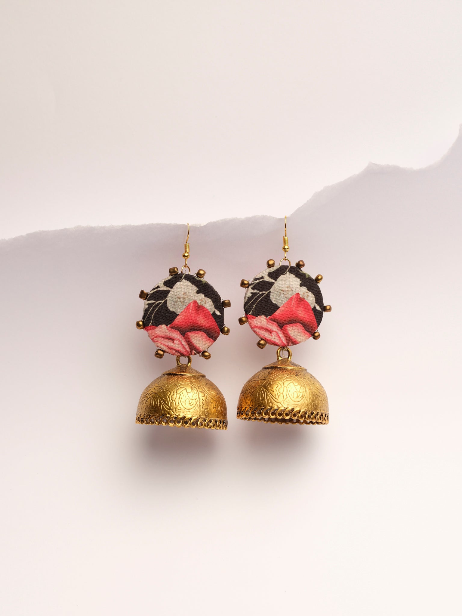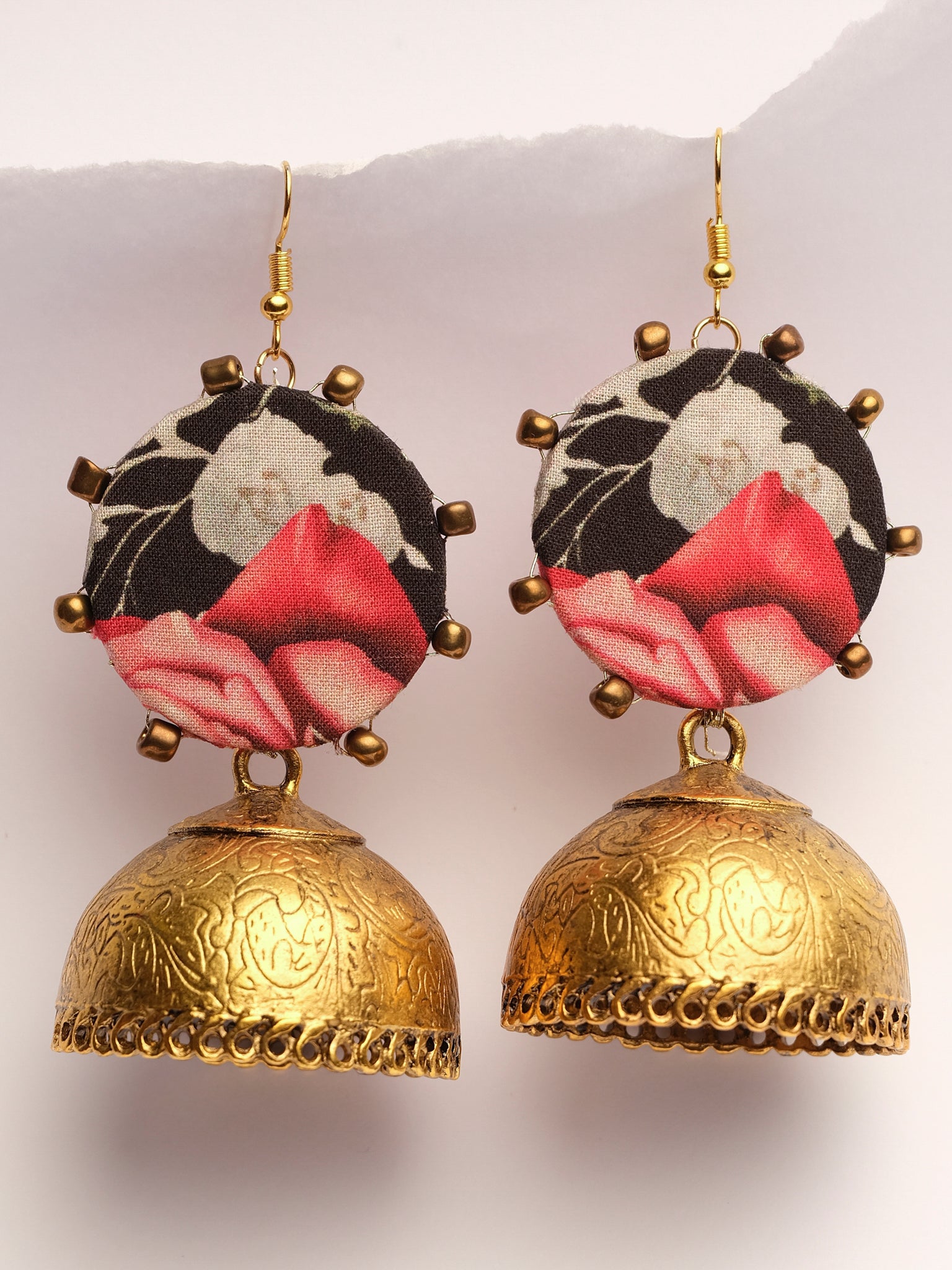 stylize ur outfit with black and white earings with bead work on the sides and copper antique jhumka.