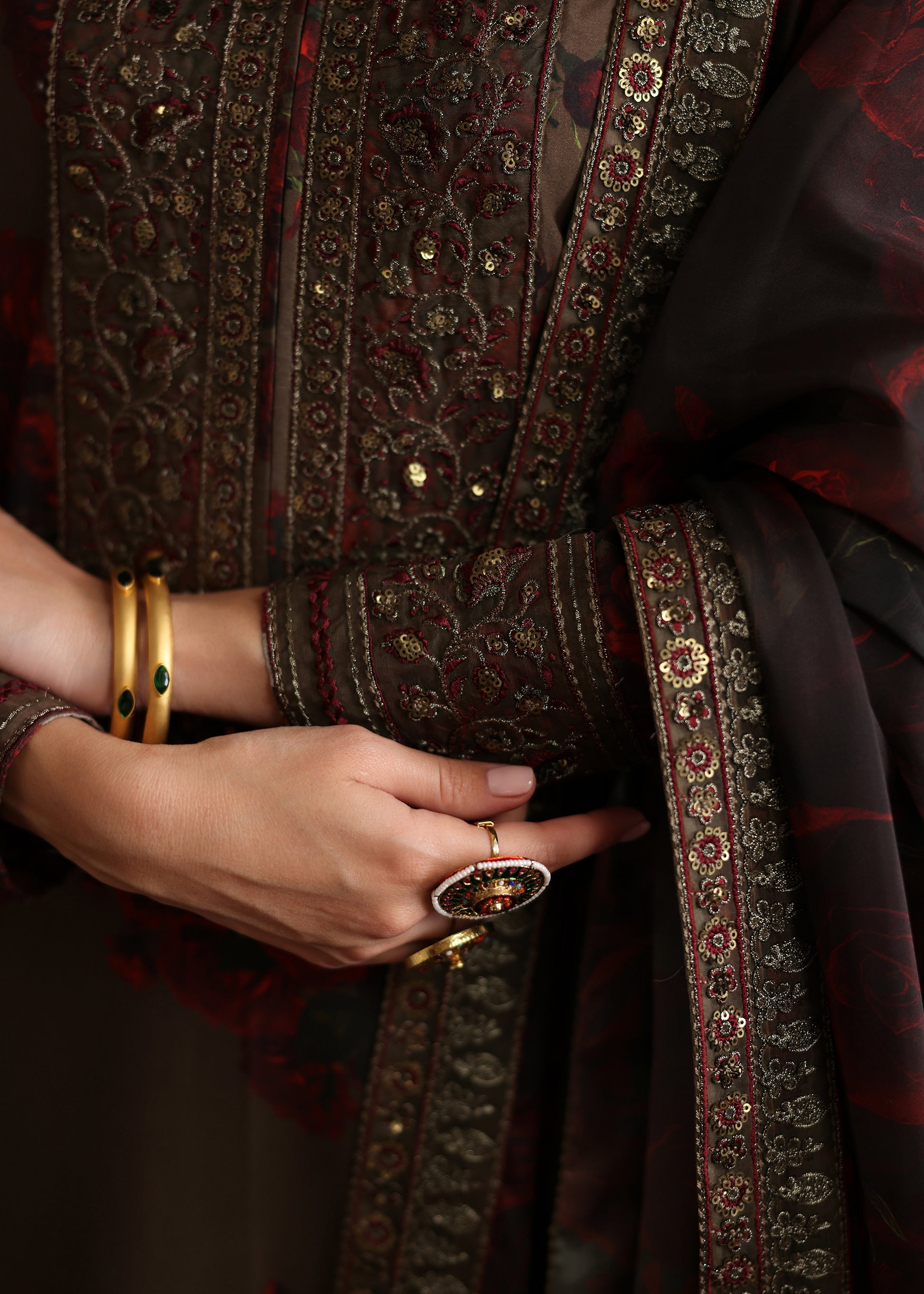This outfit is specially Designed with Premium printed Lawn and detailed Embroidered work. The shirt has several Embroidered details on neck ,sleeves and Plazo ,paired with Printed Silk embroidered Dupatta perfect for your special day .